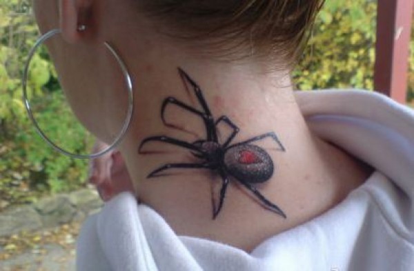一张脖子处蜘蛛纹身图案