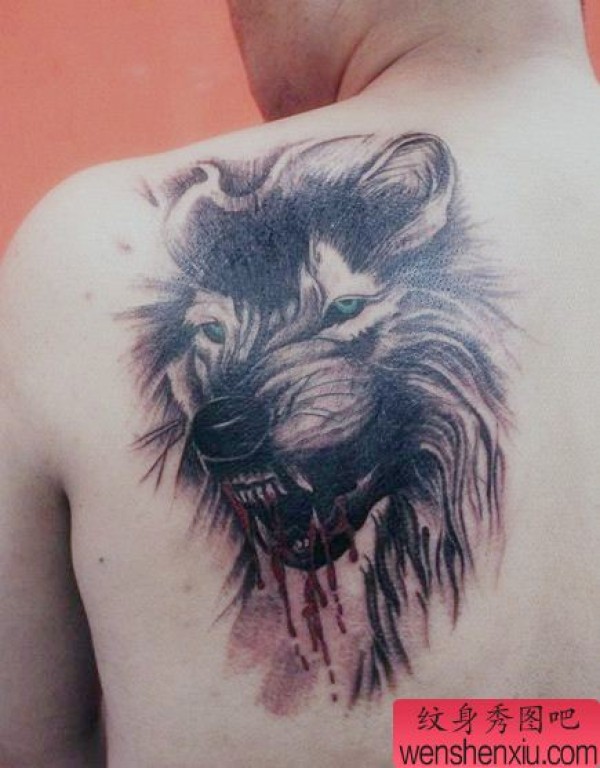 肩背霸气的滴血狼头纹身图案
