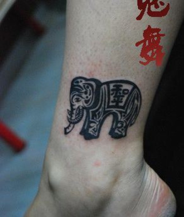 腿部可爱时尚的图案大象纹身图案