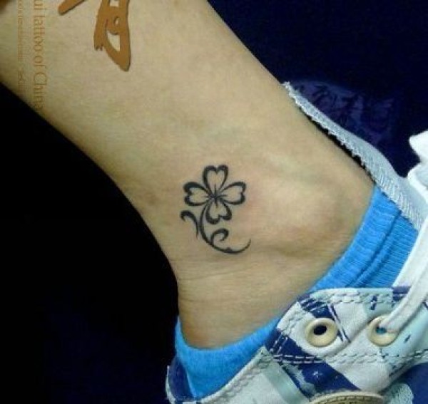 女孩子脚踝处小清新-图腾四叶草纹身图案