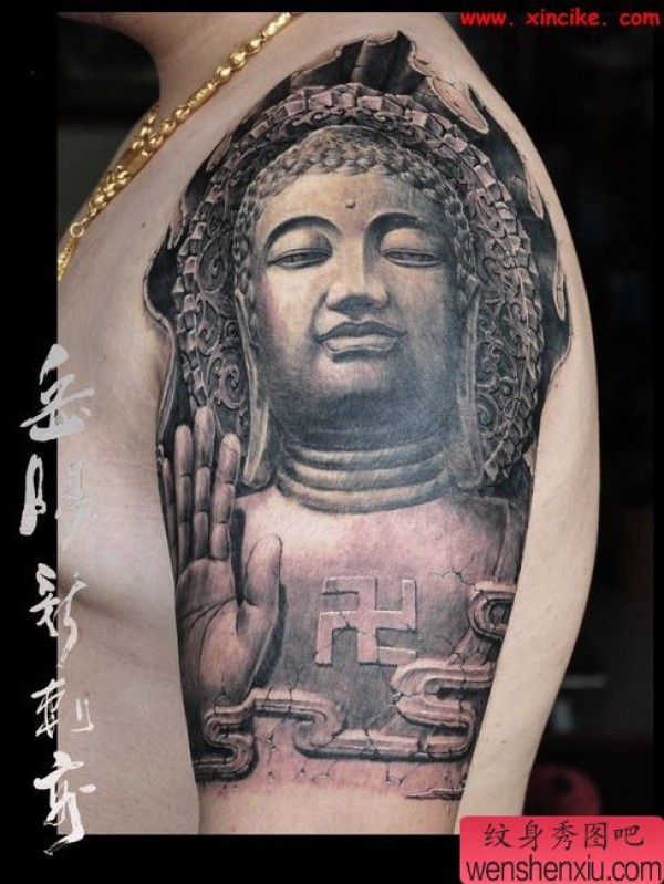 大臂石雕如来佛祖纹身图案