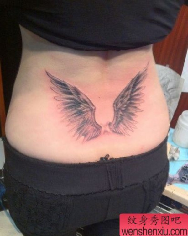 女孩子喜欢的腰部翅膀纹身图案