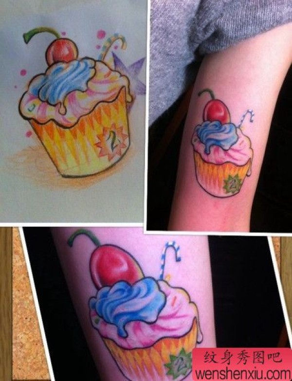 时尚时尚的女孩子手臂冰激凌纹身图案