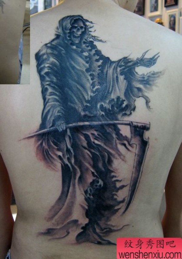 背部酷气的死神镰刀纹身图案
