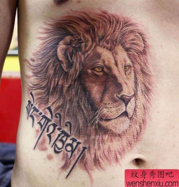 腹部霸气超酷的狮子头纹身图案