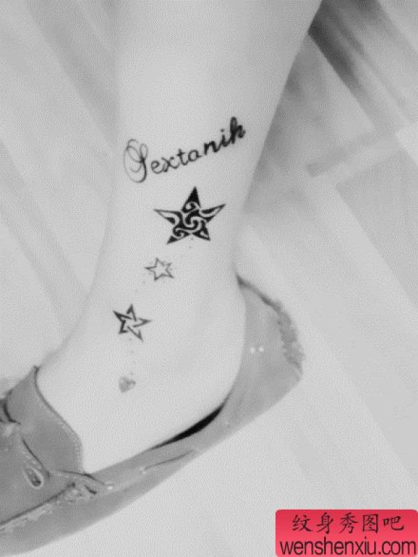 女孩子腿部好看时尚的五角星纹身图案