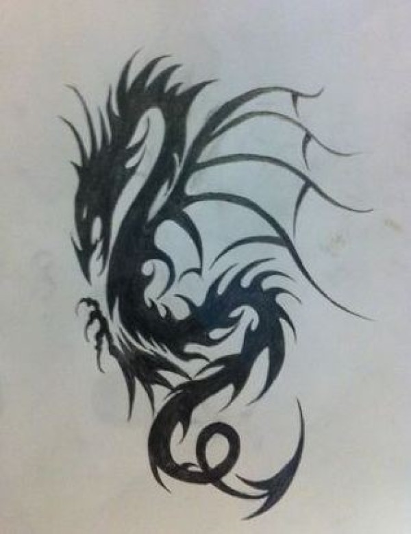 龙纹身手稿_一组老传统黑灰龙手稿纹身图案