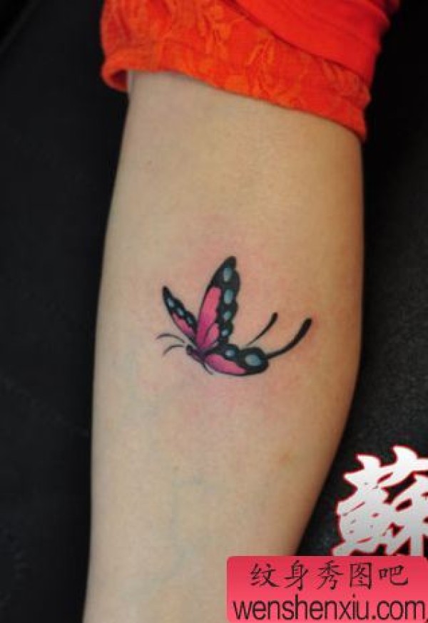 女孩子腿部精美漂亮的蝴蝶纹身图案