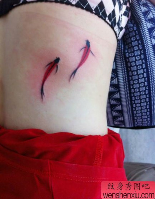 女孩子侧腰水墨画小鲤鱼纹身图案