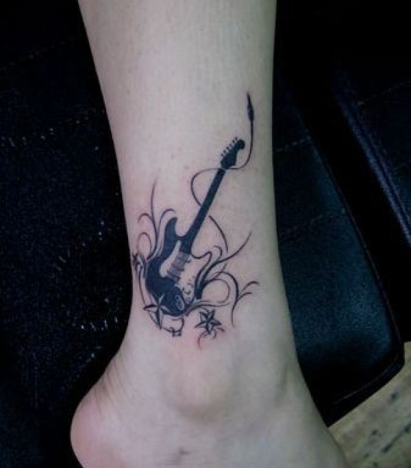 女孩子腿部图腾吉他贝斯纹身图案