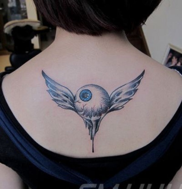 另类时尚的一张眼睛翅膀纹身图案