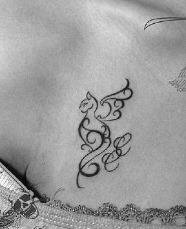 时尚的女孩子胸部图腾猫咪纹身图案