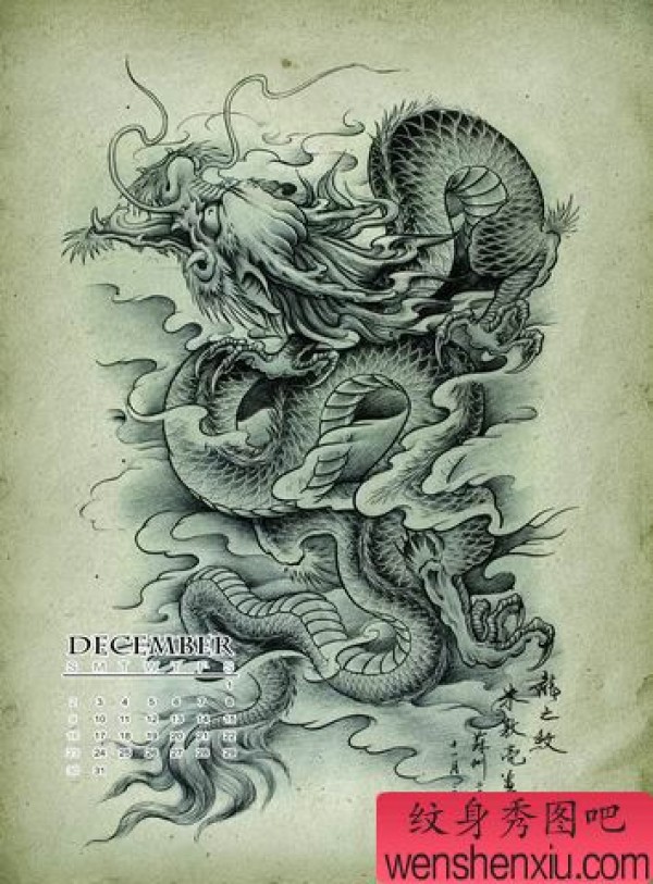 龙纹身手稿_一组老传统黑灰龙手稿纹身图案