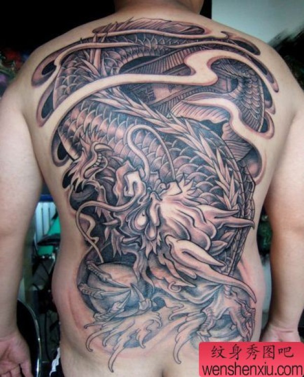 龙纹身手稿_一组老传统黑灰龙手稿纹身图案