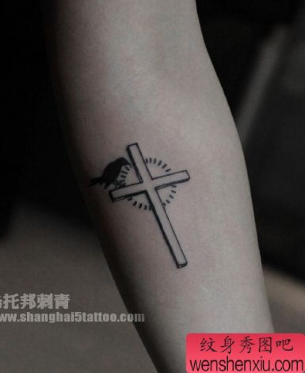 手臂小巧精美的十字架纹身图案