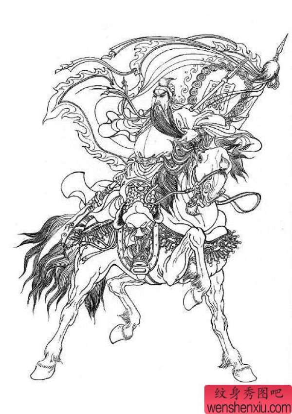 最经典的战马关公纹身图案线稿