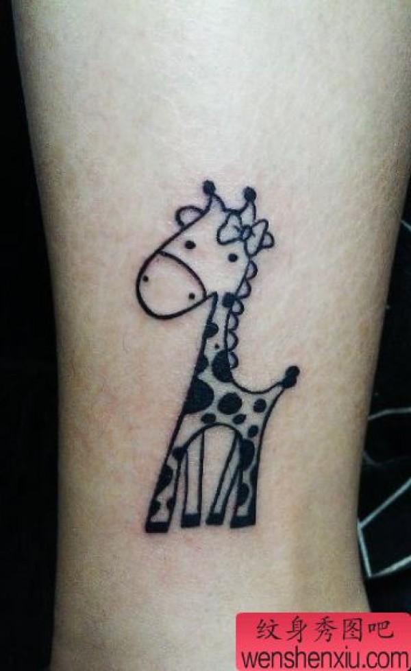 女生腿部一张图腾长颈鹿纹身图案
