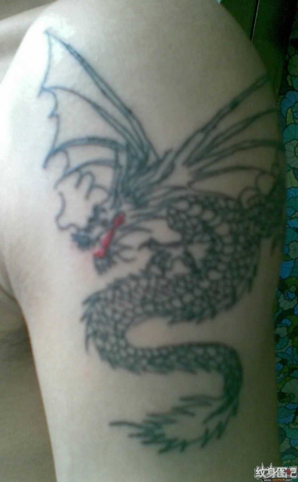 龙纹身手稿_一组老传统黑灰龙手稿纹身图案