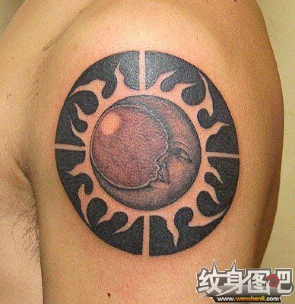 大臂上圆形图腾月亮神纹身图案