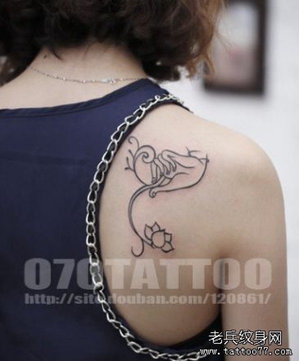 女孩子肩部时尚时尚的佛手莲花纹身图案