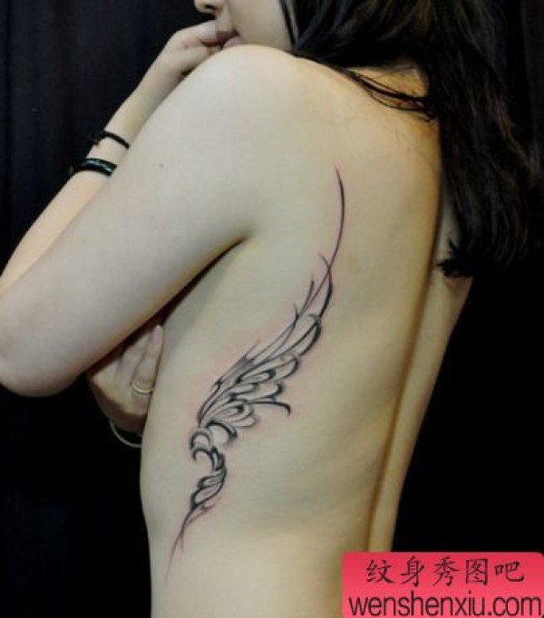 美女侧胸精美的藤蔓翅膀纹身图案