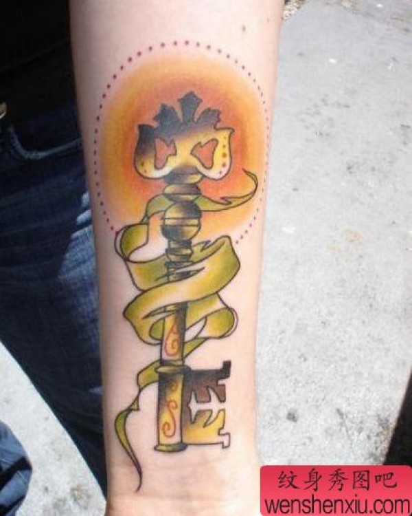 手臂欧美风格钥匙纹身图案