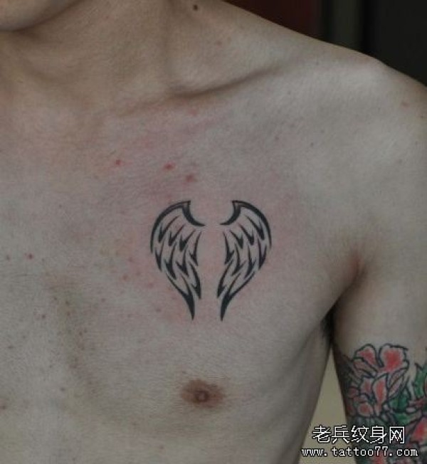 一张胸部另类的图腾翅膀爱心纹身图案