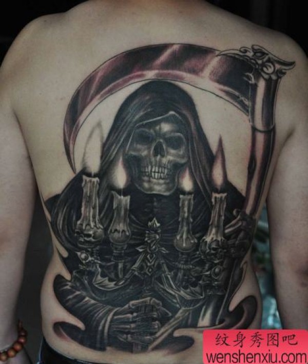 一张超帅的满背死神纹身图案