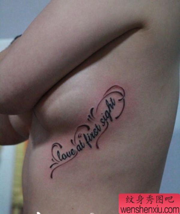 女孩子胸部时尚精美的花体英文字母纹身图案