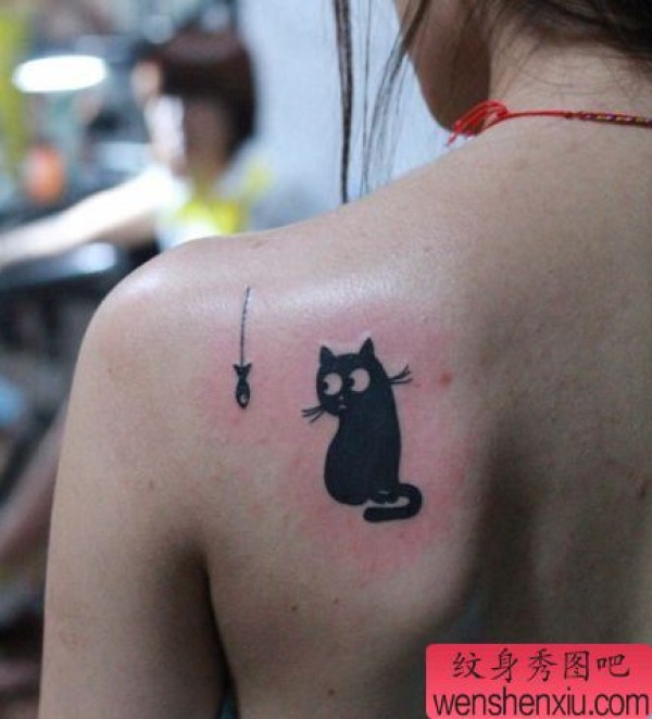 女生肩背可爱时尚的图腾猫咪纹身图案