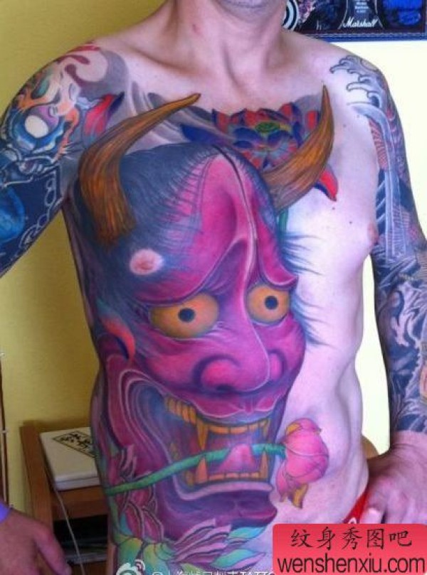 前胸超酷的一张彩色般若纹身图案