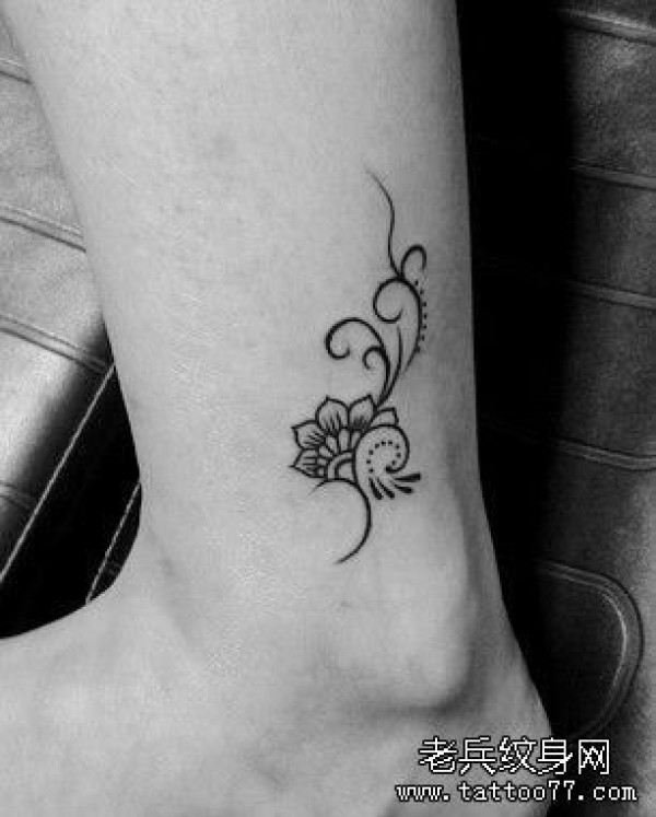 女生腿部时尚精美的小清新图腾藤蔓纹身图案