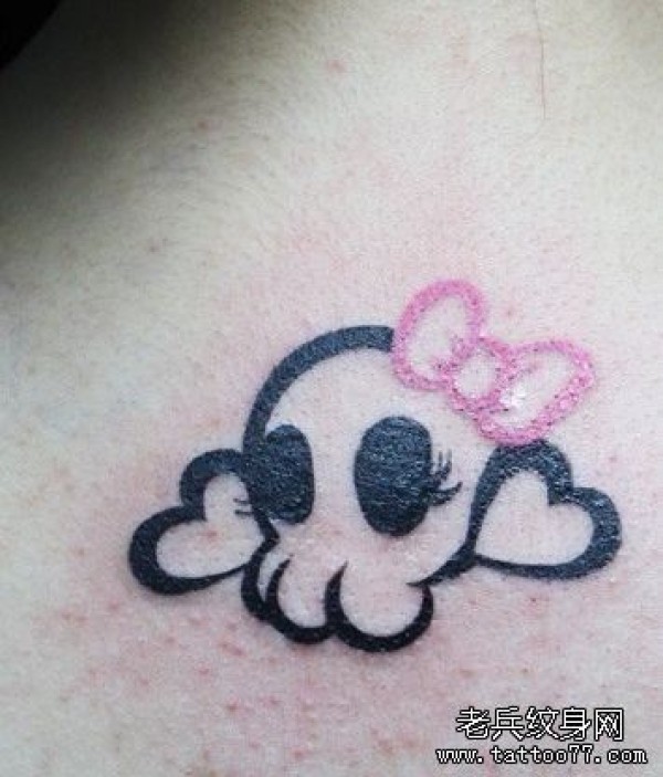 女孩子喜欢的可爱图腾骷髅蝴蝶结纹身图案