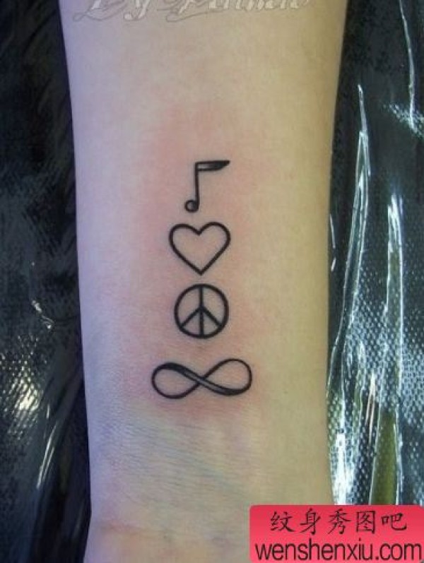 女孩子小手臂音符反战无限爱心图标纹身图案