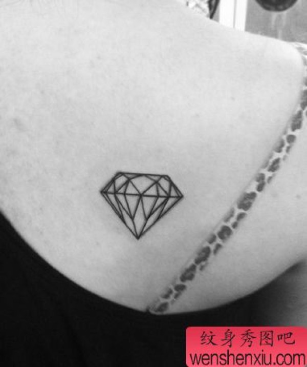 女孩子肩背线条钻石纹身图案