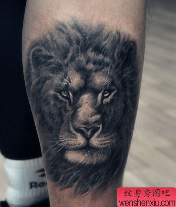腿部霸气的一张狮头纹身图案