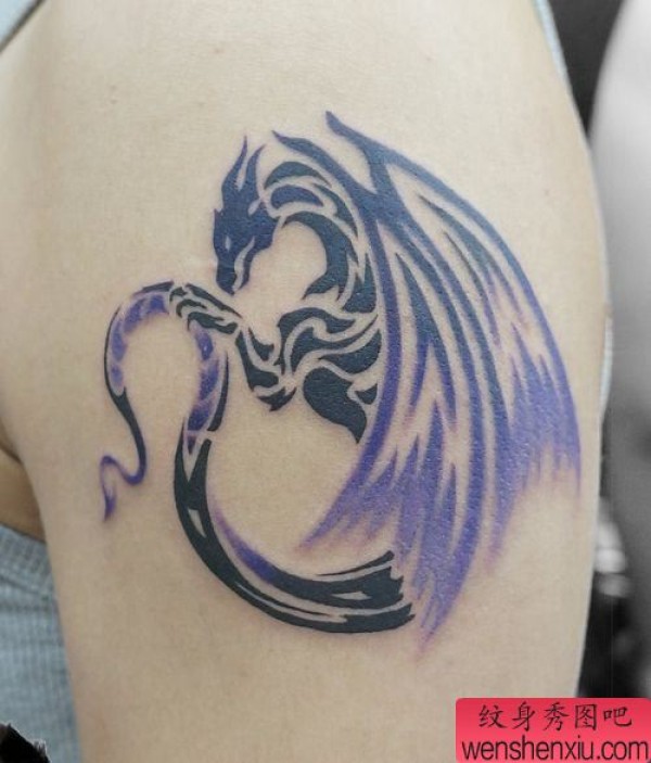 手臂帅气精美的一张彩色图腾龙纹身图案
