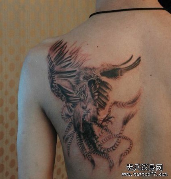 背部一张神兽朱雀纹身图案