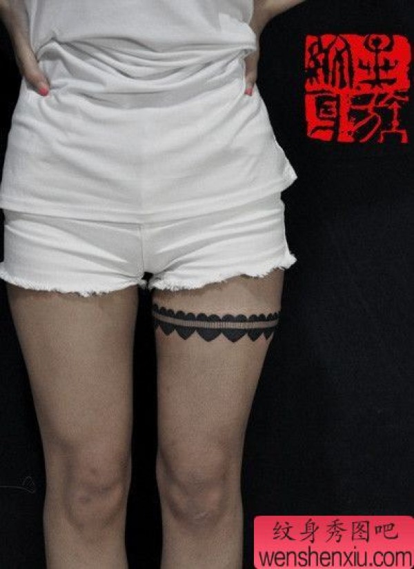 女孩子腿部时尚时尚的一张图腾蕾丝纹身图案