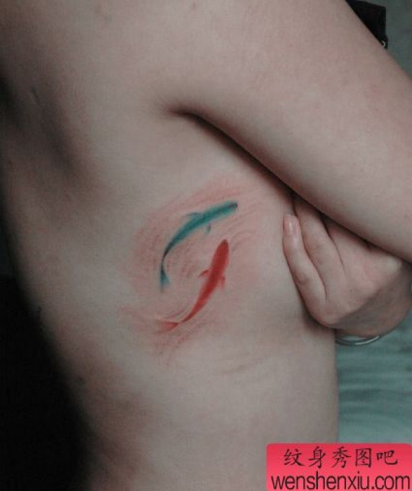 女孩子胸部好看的彩色小鲤鱼纹身图案
