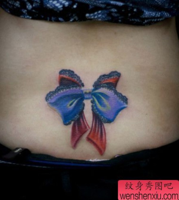 女孩子腰部精美的蕾丝蝴蝶结纹身图案