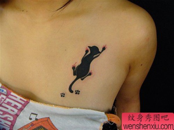 女孩子胸部一张另类的图腾猫咪纹身图案