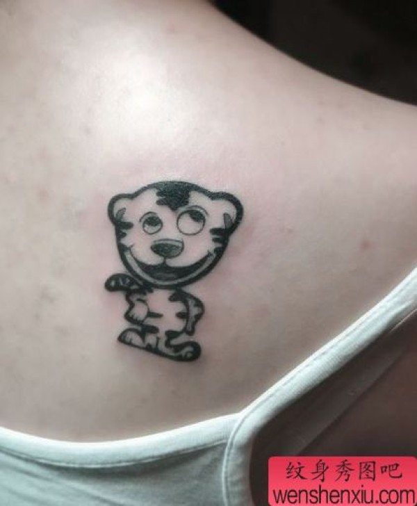 女孩子肩部可爱的图腾小老虎纹身图案
