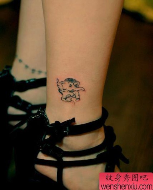 腿部一张可爱图腾小象纹身图案