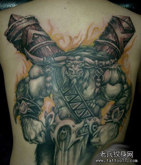 背部霸气的牛魔王纹身图案