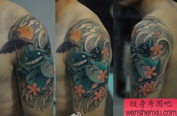 手臂卡通龙猫纹身图案