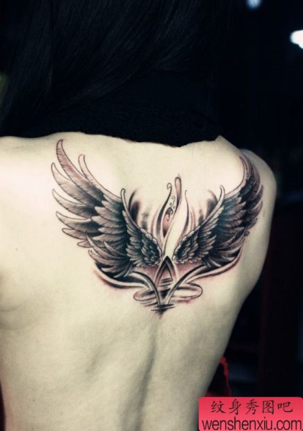 美女背部精美的翅膀纹身图案