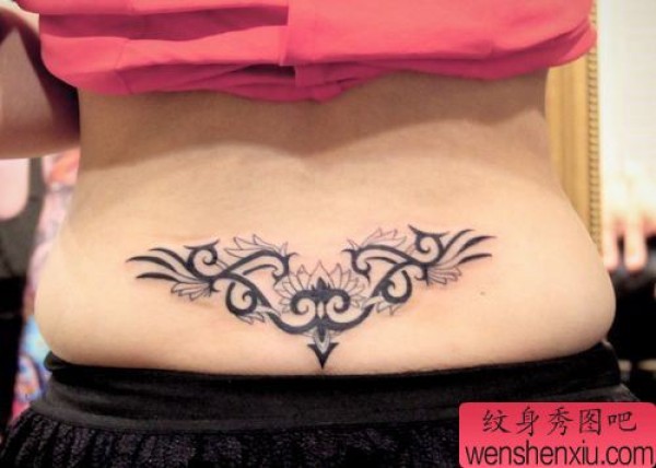 美女腰部精美的图腾腰花纹身图案