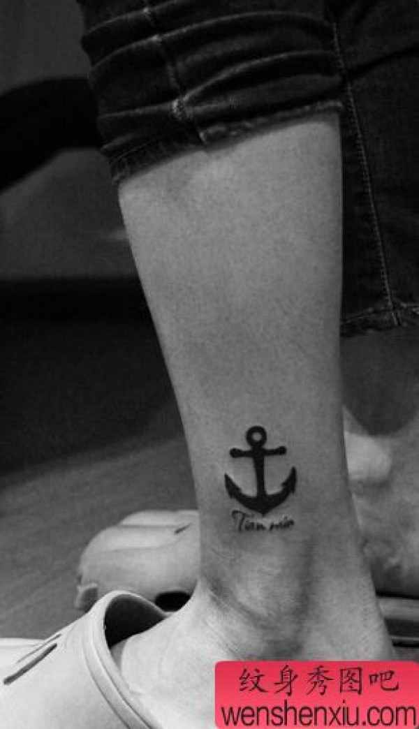 女孩子腿部小清新—图腾船锚纹身图案