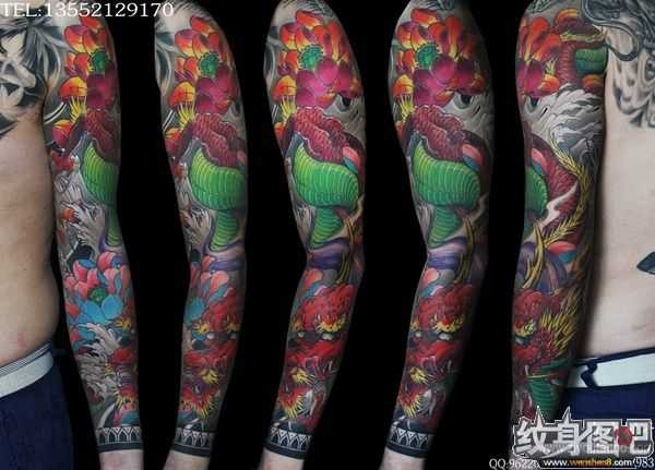 手臂莲花蛇纹身图案_臂部纹身图案大全_纹身图吧